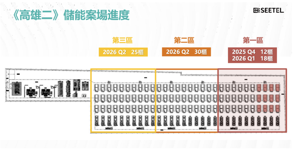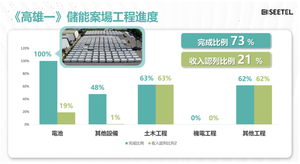 熙特爾於高雄布局兩座大型儲能案場(雲永 E-dReg),各 100MW 規模;依公司公開說法與市場整理,案場原規劃於 2025 年底前後陸續達成完工/併網里程碑,並採工程進度(完工比例)認列。若後續再加上 10–15 年的維運代操合約,此類案場理論上可同時帶來一次性工程認列與較長尾的維運收入。