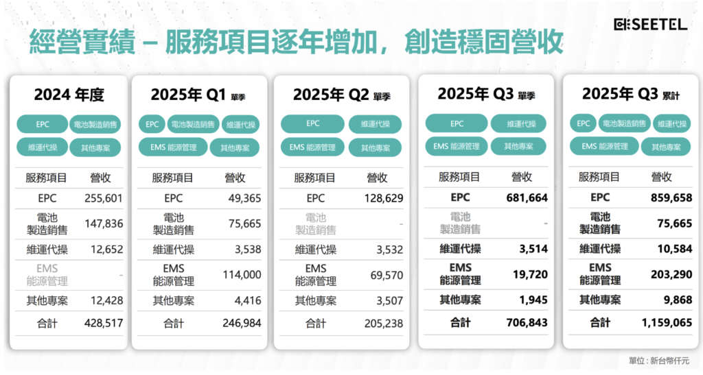 熙特爾新能源(7740)主要提供電網與工商儲能的整合服務,涵蓋案場開發、EPC 建置、併網申請到後續維運與電力交易平台代操,並透過子公司量產儲能櫃與自有 EMS 平台,形成「工程+設備+維運」的一站式解決方案。由於大型案場多採進度/里程碑認列,且認列高度依賴併網、測試與驗收節點,因此公司單年度的營收與獲利,容易隨案場進度出現明顯波動。